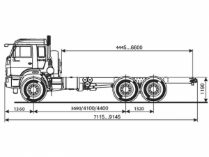 Шасси 6*6, длина рамы мм, грузоподъемность 12 тонн