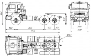 Шасси 6*6 вездеход, длина рамы 6 080 мм, межосевое растояние 3 690 мм, грузоподъемность 12 тонн…